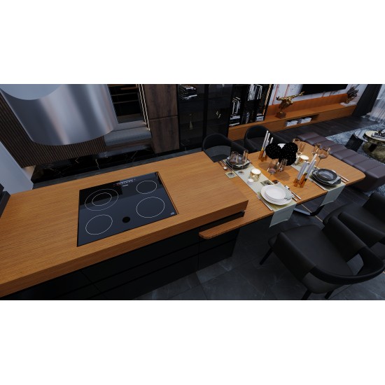 - Sıcak teak tonları ve doğal ahşap dokusu